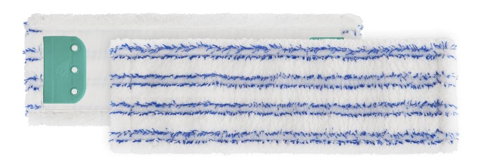 Frange en microfibre blanche et bandes bleues abrasives pour sol lisse